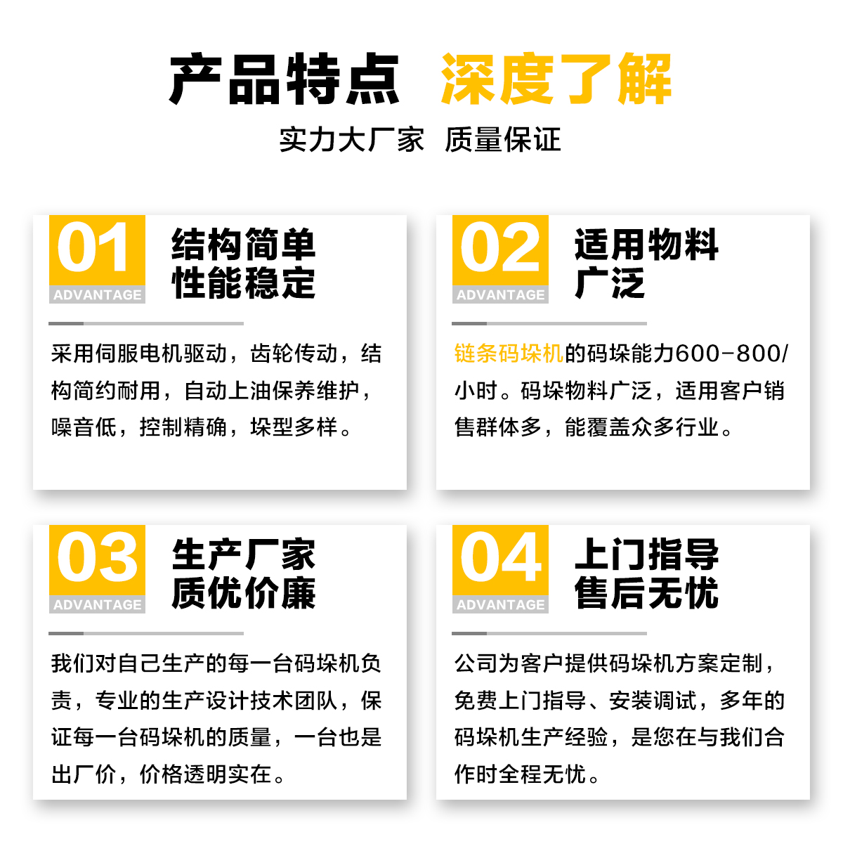 基于對(duì)碼垛機(jī)設(shè)備與客戶需求的深刻認(rèn)識(shí),我們與提供一站式服務(wù)解決方案。
